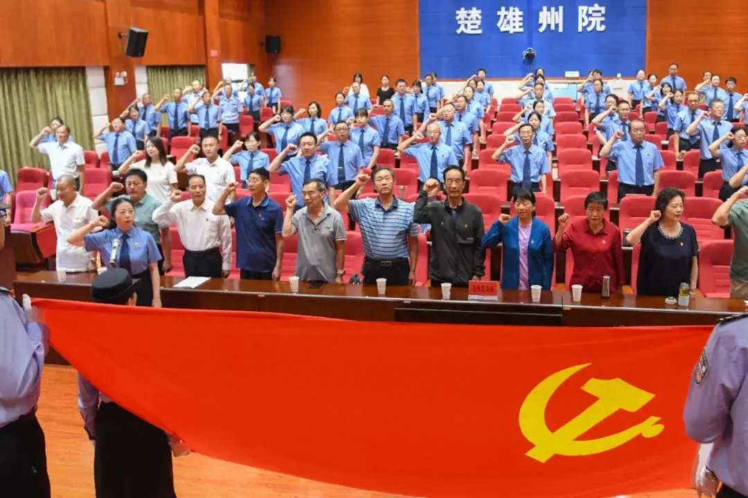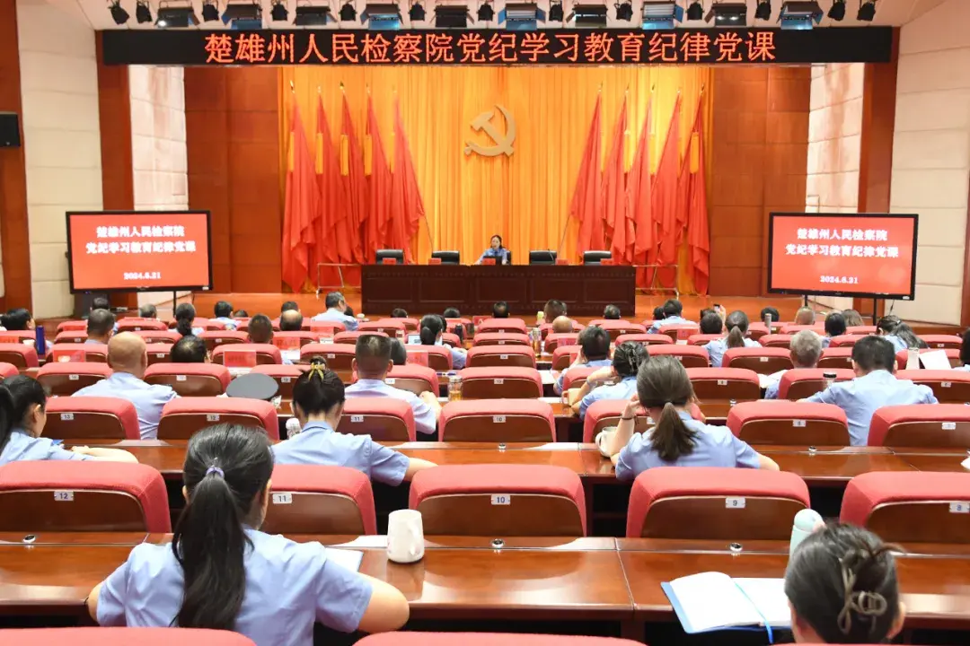 在中国共产党成立103周年之际,为进一步增强党性观念,持续加强机关党的建设,激励和引导全体党员干警坚定信心、鼓舞斗志、担当作为、接续奋斗。6月21日上午,楚雄州检察院召开庆祝建党103周年暨“七一”建党节大会,院党组书记、检察长肖洁出席会议并讲授党纪学习教育纪律党课,院党组副书记、副检察长刘震乾主持会议,州院领导班子成员、全体检察干警、部分退休党员代表参加会议。