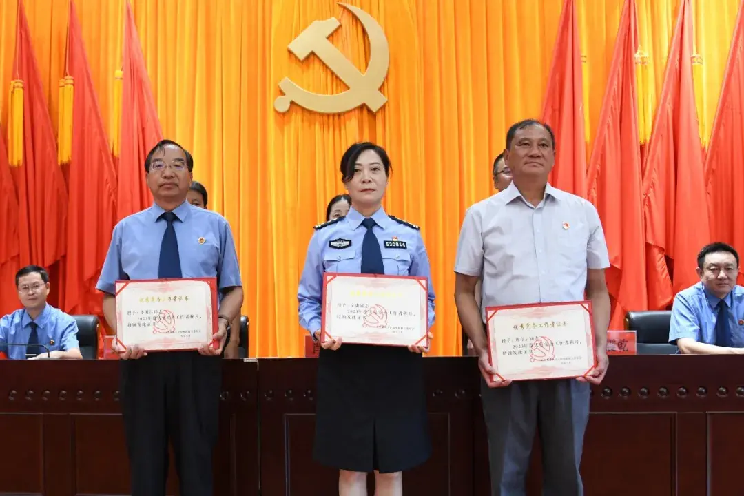 会议通报表扬了2023年度州检察院机关优秀共产党员、优秀党务工作者及先进党支部。院党组成员、政治部主任王华宣读了通报表扬决定,院党组班子成员为荣获2023年度“两优一先”的2个机关党支部、3名优秀党务工作者和16名优秀共产党员颁发荣誉证书,通过树立典型、表扬先进,不断激发广大党员干警勇担重任、敢于争先的工作干劲,以更加饱满的精神状态投入到检察事业中。