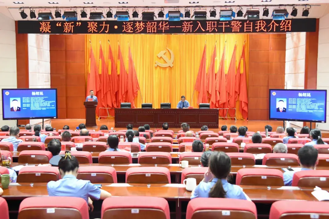 最后,新入职的9名干警逐一上台进行自我介绍,围绕自身工作岗位职能畅谈感悟,进一步增强使命感和荣誉感,在新工作岗位上开好头、起好步,书写好逐梦检察的青春华章。