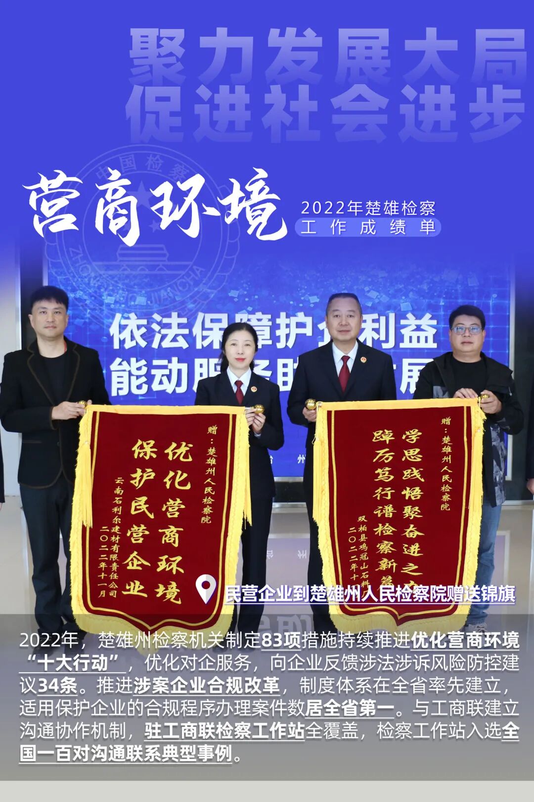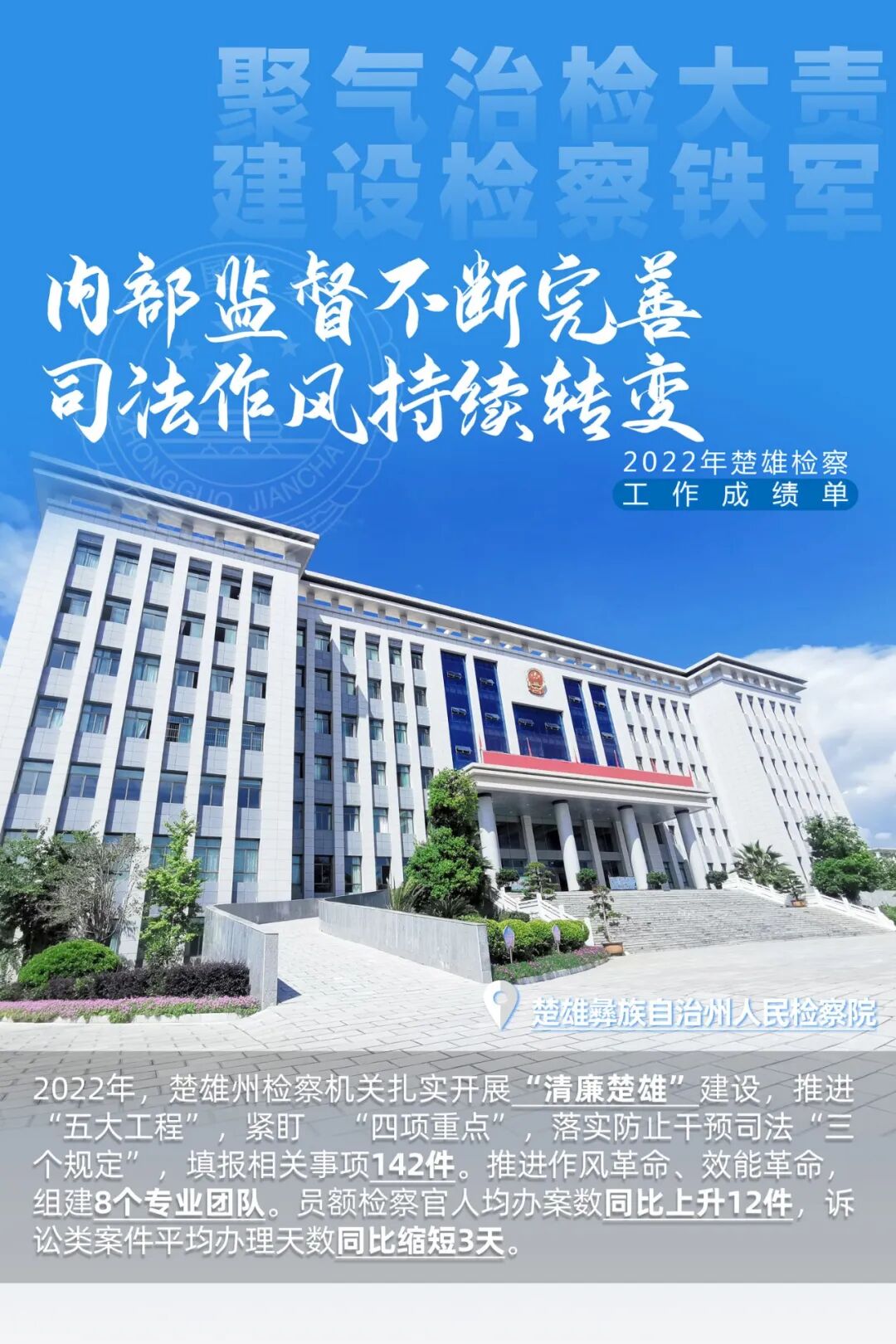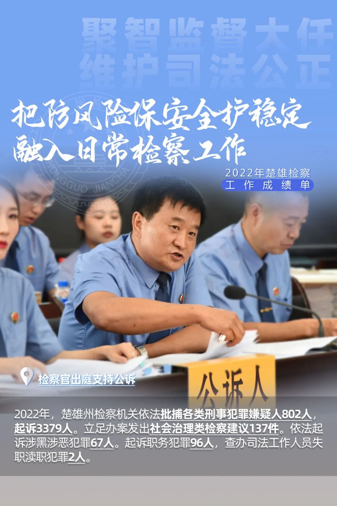 2022年,楚雄州检察机关坚持以习近平新时代中国特色社会主义思想为指导,深入贯彻习近平法治思想,紧跟新时代法律监督工作发展趋势,统筹安全与发展、兼顾稳进与提升,力破困局、勇开新局,各项检察工作取得新的业绩,向党的二十大交出了高质量发展楚雄检察答卷。