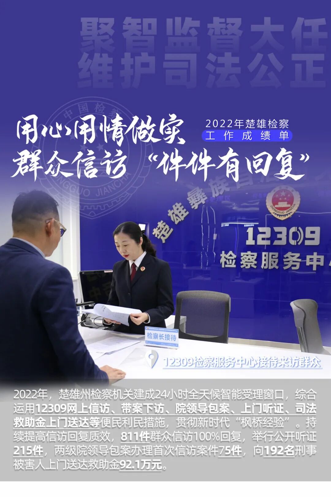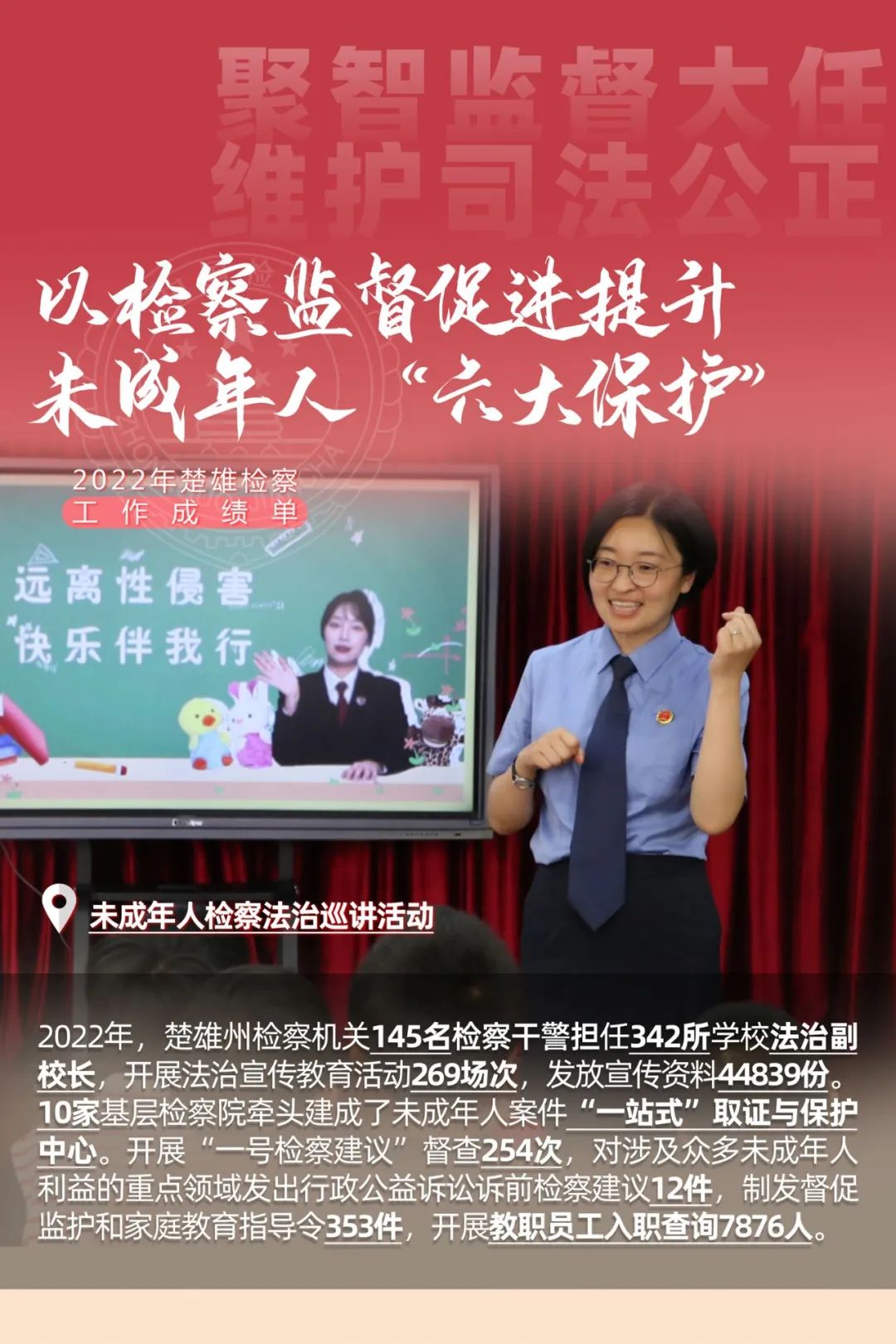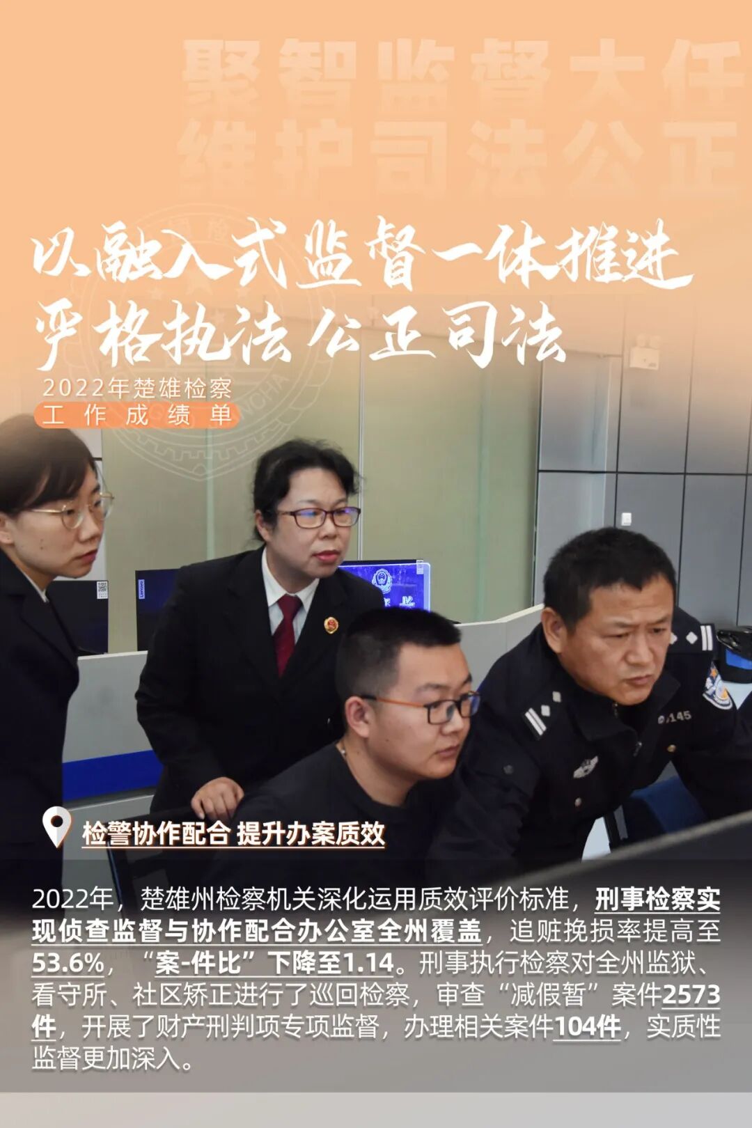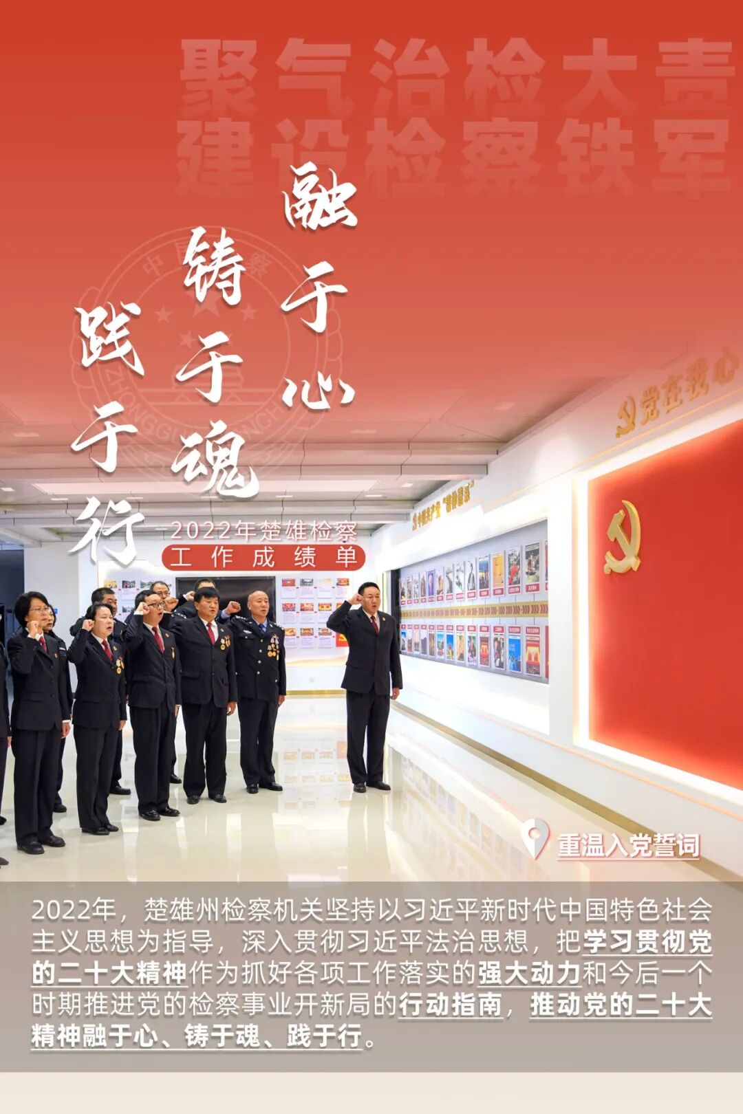 2022年,楚雄州检察机关坚持以习近平新时代中国特色社会主义思想为指导,深入贯彻习近平法治思想,紧跟新时代法律监督工作发展趋势,统筹安全与发展、兼顾稳进与提升,力破困局、勇开新局,各项检察工作取得新的业绩,向党的二十大交出了高质量发展楚雄检察答卷。