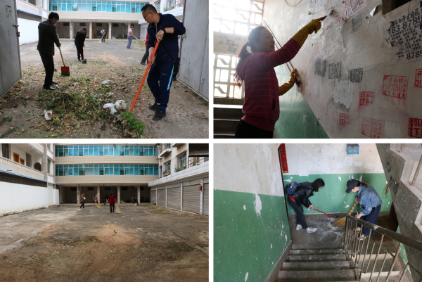上午8:30分全体干警集中到原州检察院住宿区,在党组书记、检察长普赵辉的带领下,州检察院干警分成小组,对小区及周边区域进行了环境卫生集中整治,重点清除了小区绿化带内的菜地、鸡舍、杂物、杂草,楼房外墙和楼道内的小广告、私搭乱建、卫生死角等。