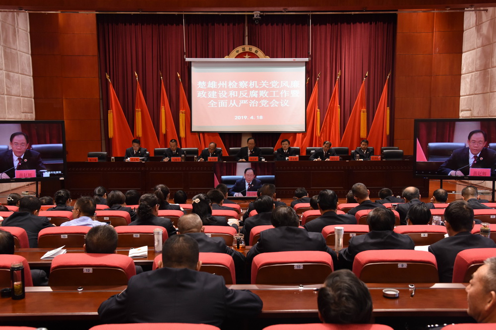 4月18日,全州检察机关党风廉政建设和反腐败工作暨全面从严治党视频会议召开。州院班子成员、楚雄市院、双柏县院检察长、纪检组长、南华县院纪检组长及州院机关全体干警在主会场参加会议。