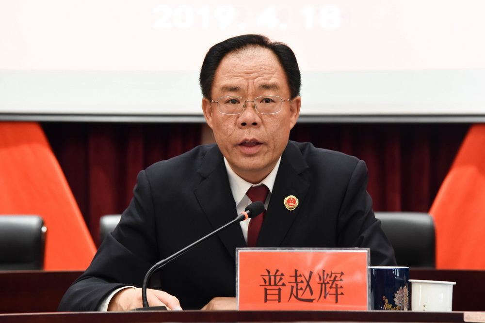 会议由党组成员副检察长蔡永明同志主持,会上,党组成员、派驻纪检组组长段正明传达了全省检察院党风廉政建设会议和州纪委九届四次全会精神。州院党组书记、检察长普赵辉同志全面总结了2018年检察机关的工作,他指出,2018年,全州检察机关在党中央、高检院、省院和州委的正确领导下,以习近平新时代中国特色社会主义思想为指导,深入学习贯彻党的十九大精神,坚决贯彻落实党中央的战略决策和上级检察机关、州委的工作部署,牢固树立“四个意识”,坚定“四个自信”,自觉做到“两个维护”,切实担负起管党治党的政治责任,严明政治纪律,坚决纠治“四风”,推动标本兼治,压实压牢管党治党政治责任,推动全面从严治党、全面从严治检向纵深发展。各项检察业务工作平稳发展,取得新的成绩。 普赵辉检察长要求:全州检察机关要以新的精神面貌、新的工作作风、新的务实举措,把党中央、高检院、省院和州委全面从严治党的工作部署一以贯之落到实处。