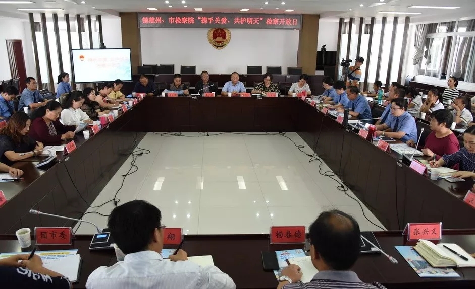 为增进社会各界对未成年人检察工作的了解,努力构建未成年人检察工作社会支持体系,2019年5月31日,楚雄州、市检察院联合于举办了以“携手关爱,共护明天”为主题的检察开放日活动,此次活动邀请了楚雄州、市的部份人大代表、政协委员、特约检察员、州市两级关工委、教体局、共青团、妇联、部分中小学校长、幼儿园园长、中小学学生代表及家长代表、企业代表一百余人参加活动。