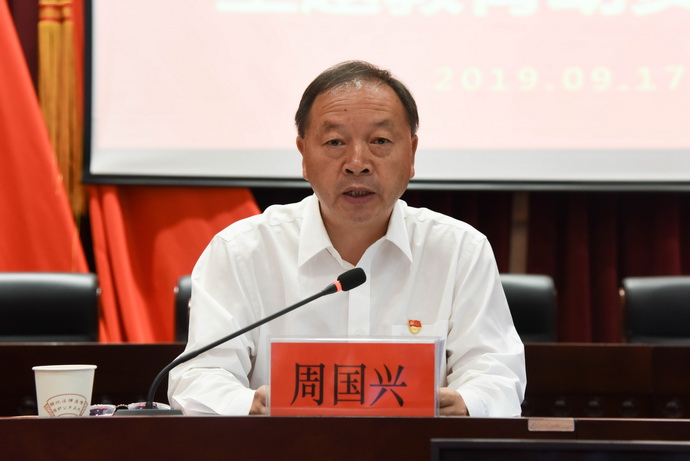 州委第十五巡回指导组组长周国兴作指导讲话,他指出全州主题教育部署会议的召开,标志着我州主题教育正式启动。他介绍了州委指导组的7项职责任务。他围绕学习贯彻习近平总书记重要讲话精神以及中央和省州党委部署要求,结合巡回指导组工作职责,就落实主题教育各项任务,提出要聚焦根本任务抓好落实,把握“十二字”总要求抓好落实,紧扣“五句话”目标抓好落实,坚持四个“贯穿始终”抓好落实,强化领导带头抓好落实,力戒形式主义抓好落实等六点要求。