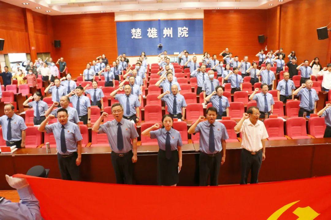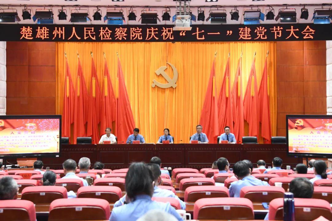 为庆祝中国共产党成立102周年,激励广大党员干部坚定信念、坚守信仰,满怀豪情投入到检察工作中,6月27日上午,楚雄州检察院召开庆祝中国共产党成立102周年党员大会,院领导班子全体成员,全体在职在编干警,派驻纪检监察组全体成员及退休老党员代表参加庆祝大会,党组副书记、副检察长刘震乾主持会议。